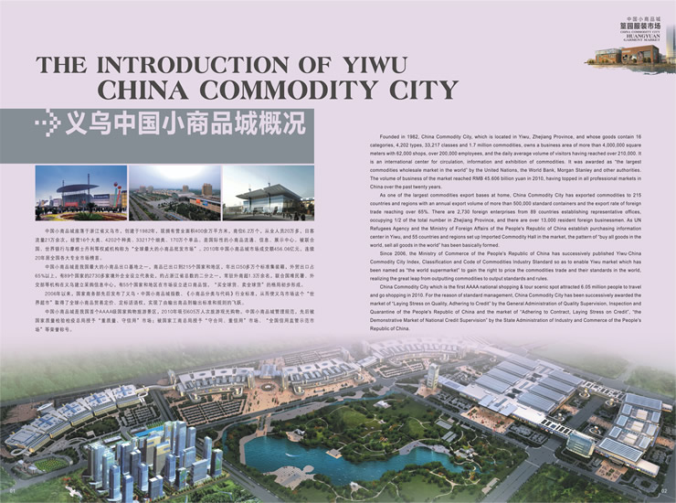 中國小商品城篁園服裝市場地處義烏最為繁華的繡湖商圈,市場總占地117畝,總建筑面積42余萬平方米,總投資14億,余2011年4月份投入使用。篁園服裝市場定位為專業(yè)服裝市場,符合市場國際化、品牌化、多元化的發(fā)展趨勢,有利于提升義烏服裝市場的競爭力,推進專業(yè)化、規(guī)?;l(fā)展。 為優(yōu)化行業(yè)布局,強化競爭實力,突出規(guī)模優(yōu)勢,凸顯市場商機,篁園服裝市場1-5樓布局男裝.皮裝;女裝;童裝;牛仔.褲;睡衣.羊毛衫.運動服.襯衫共5個經營類別。