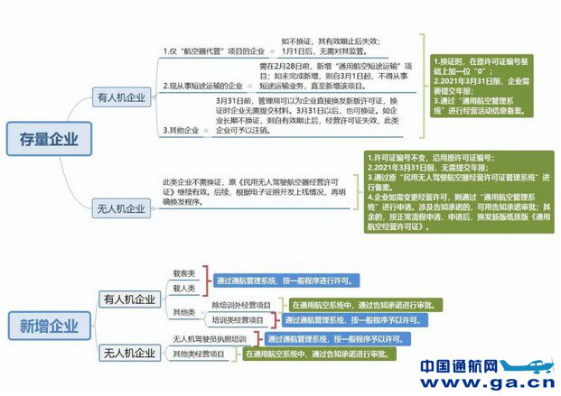 A6:此類情形適用《通用航空經(jīng)營(yíng)許可管理規(guī)定》有關(guān) 規(guī)定。企業(yè)需通過“通用航空管理系統(tǒng)”提出申請(qǐng),按照申 領(lǐng)或變更通用航空經(jīng)營(yíng)許可證的有關(guān)程序辦理。其中,存量 無(wú)人機(jī)企業(yè)在取得新版《通用航空經(jīng)營(yíng)許可證》的同時(shí),其 原持有的《民用無(wú)人駕駛航空器經(jīng)營(yíng)許可證》自動(dòng)失效(許可證編號(hào)參見 Q2/A2)。